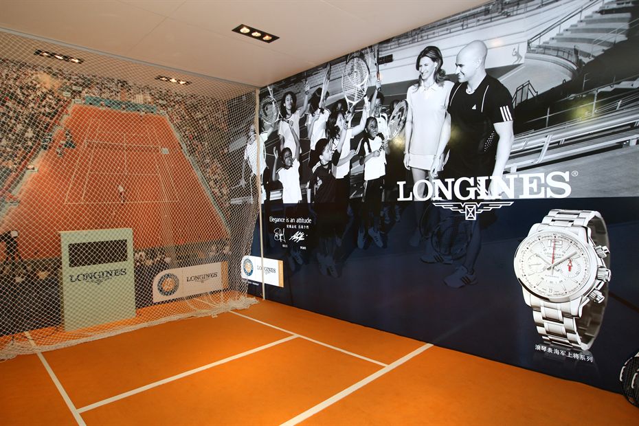 Longines Smash Corner was installed besides new Longines showroom at Taiyuan Paris Spring Department. Numerous watch fans and tennis fans were attracted to test their serve in this very interesting and refined area. It was a pleasant surprise that Longines Ambassadors of Elegance, Aaron Kwok went to Taiyuan boosting ‘Longines Tennis Children Tour of Dreams’. Aaron tested his serve in Longines smash corner together with twenty tennis children. He Swung racket elegantly and his good serve speed won audience’ acclaim.
