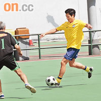 披上8號球衣的城城,代表晨曦明星邀請隊出賽,由下午二時踢到六時,狀態大勇的他說:「我有操開體能,今日係為慈善出力,我寧舍搏命。(你有六個入球!)多得隊友傳送同配合,賽車可以自己控制,踢波要講同隊友配合。其實我係灣仔舊街坊,阿爸以前在皇后大道東有間『大盛金舖』,但我冇踏足過修頓。間金舖三年前被政府收番,列作法定古蹟,我家族見證咗香港歷史。(重遊舊地緬懷一番?)等政府整好先,我會去望望。」