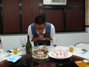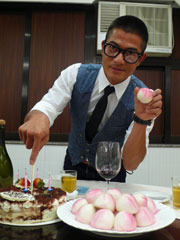 城城在生日糕前許願。