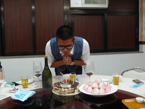 城城在生日蛋糕前許願。