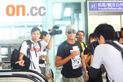 郭富城一頭Skinhead示人與吳景滔到日本行紅地氈。