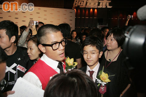【20:21】2009年10月11日【on.cc專訊】 郭富城再以父子兵上陣,與「囝囝」吳澋滔(Ian)為配音的動畫電影《阿童木》宣傳,圍觀者眾,場面熱鬧。城城與熊黛林在泰國渡過溫馨生日返港,甫出現即成為焦點,Ian雖然出動舉家撐場,弟弟更於台下為他擔任攝影師。