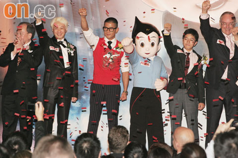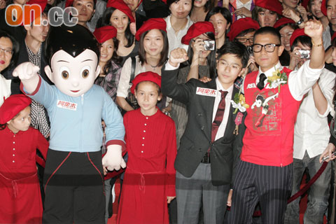 【20:14】2009年10月05日【on.cc 專訊】郭富城、吳澋滔為改編自手塚治虫的動畫電影《阿童木》分別聲演天馬博士及阿童木兩個角色。二人於日本新宿出席全球首映禮,出席的還有替日本版聲演的上戶彩、役所廣司及手塚治虫的兒子手塚真,現場有過百日、港記者採訪,於日本時間下午五時四十五分,眾人行紅地氈進場。