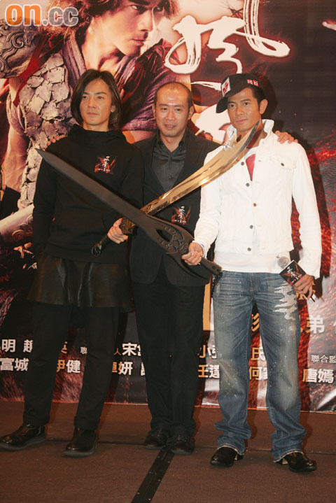 伊健和城城笑言要老闆林小明(中)派獎金。