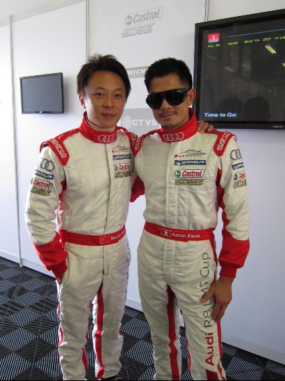 [15:16] 2012/04/30 【on.cc 東方互動 專訊】 郭富城日前以半職業車手到上海參加奧迪國際賽車比賽,同場過半都是專業賽車手,包括F1車手李英健、Alex Yoong,城城跟兩人一起研究及分享賽車心得,經過兩回合城城成功贏得冠軍,他說:「能勝出也是險勝,還有更大的進步空間。」