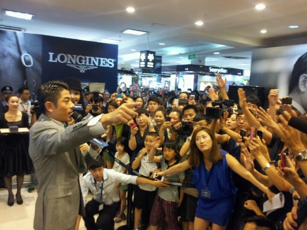 [17:32] 2012/06/24 【on.cc 東方互動 專訊】 郭富城為代言的手錶品牌到內蒙呼和浩特新店剪綵,城城繼20多年前拍電視劇《成吉思汗》後,第二次踏足內蒙,令他感覺十年人事幾番新。當地的粉絲對城城表現很熱情,舉行活動的商場一早已擠滿人潮,品牌出動近百名保安為城城開路,完成工作後大會安排城城品嘗正宗蒙古全羊宴火鍋,惟抱恙的城城為免影響拍戲只能淺嘗,不過城城卻對入住蒙古包很有興趣,希望下次有機會享受草原游牧生活。
