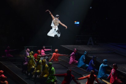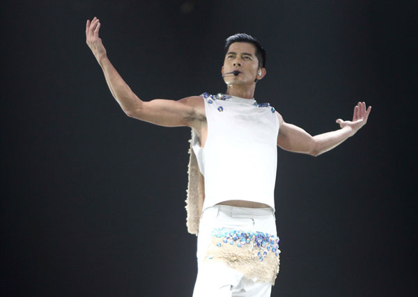郭富城澳門跳彈床驚險萬分 [17:19] 2012/10/01 【on.cc 東方互動 專訊】 郭富城在中秋佳節赴澳門舉行兩場演唱會,勁歌熱舞,為觀眾帶歡樂,當唱到興起時更除衫赤裸上身!城城當晚以多個造型獻唱,其中穿上10磅重的金色戰衣在台上勁跳一番,又在彈床做出多個驚險萬分的空中翻騰動作,令觀眾看得目不暇給。