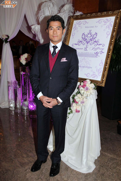 [22:46] 2012/12/05 【on.cc 東方互動 專訊】 前港姐鄭嘉雯(Karman)與晨曦足球會班主之子周志豪結婚,晚上於金鐘一酒店筵開五十多席,賓客包括霍震霆、洪金寶夫婦、郭富城、洪天明、佘詩曼與馬德鐘夫婦等,郭富城表示送現金做禮最實際,自言有跟新郎哥落場踢波,眼見兩人由拍拖到結婚。至於本來做兄弟團的天明笑言因頂不住一班姊妹,故申請不做開門那一Part,問到有否傳授生仔秘笈?他說:「唔使啦!呢啲閂埋門搞掂就OK,但我老婆(周家蔚)未生已經想生第二個。」下午於教堂註冊時,戴上1卡多鑽戒的新娘看似肚凸凸,但Karman坦言未懷孕。